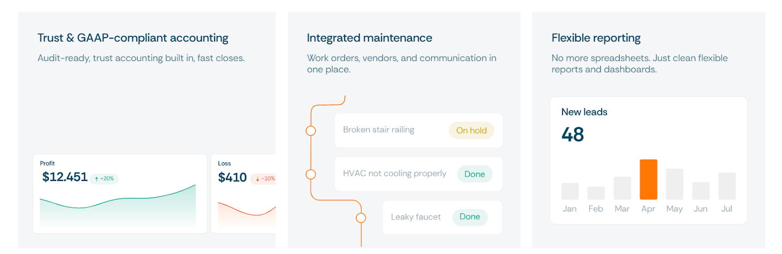 - Trust & GAAP‑Compliant Accounting: Runs audit‑ready books and embeds trust workflows to keep owner funds accurate.